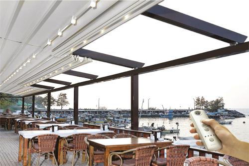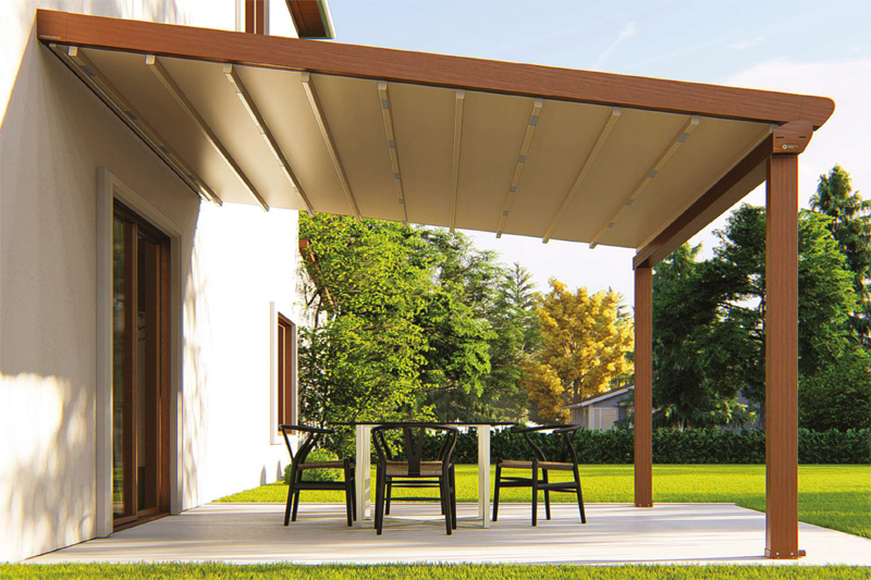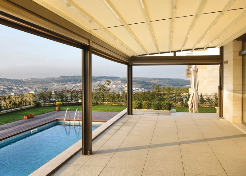 High-end retractable awning with aluminum structure, Avantgrade Pergola Roof offers lasting and aesthetic systems to make use of your patio, terrace and backyard all year around.