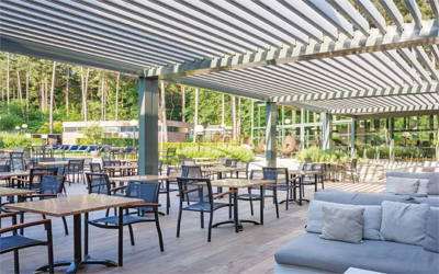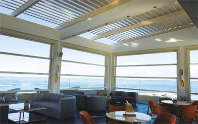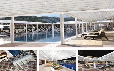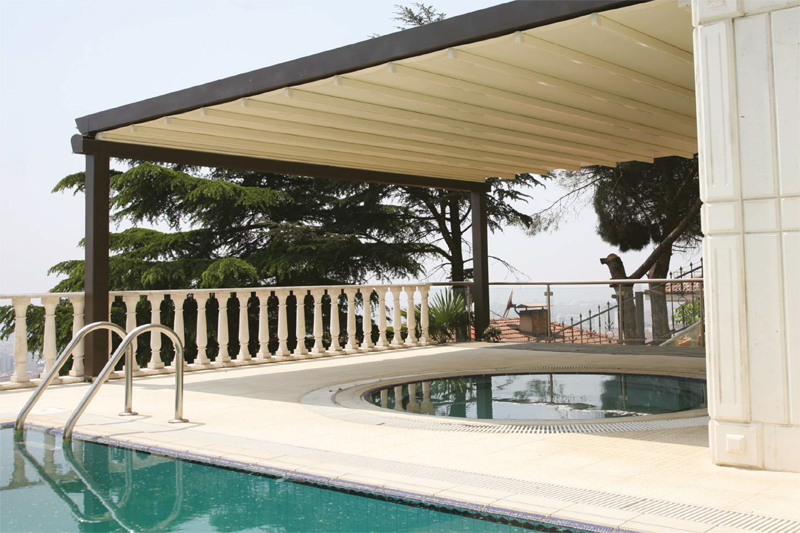 High-end motorized louvered roof, made of aluminum structure with insulated aluminum panels, offers outstanding comfort in cold and hot seasons. Pergola Roof Louvered withstands greater snow loads and strong winds.