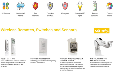 SOMFY motorized systems power Pergola Roof's retracting automation and lighting application across its products, such as; awning, blinds and glass systems. SOMFY is known for its strong and quiet motors that millions have trusted since 1980.